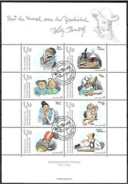 Arts Cartoons Comics BD Max & Moritz by Wilhelm Busch 2008 Liechtenstein souvenir sheet with stempels