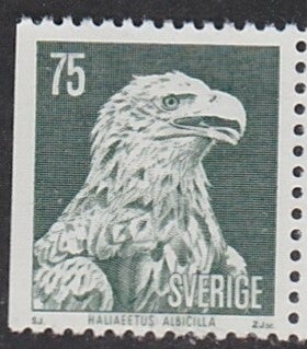 Birds of Prey (Haliaeetus albicilla) White-tailed Eagle 1973 Sweden stamp imperforated left