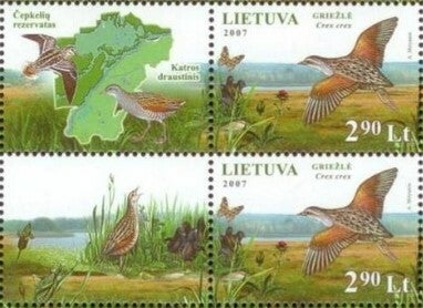Birds (Crex crex) Corn Crake 2007 Lithuania block of 4