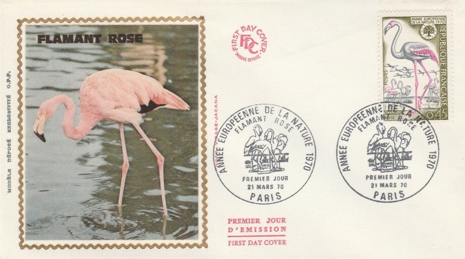 Birds Flamingos (Phoenicopterus roseus) Greater Flamingo 1970 France FDC