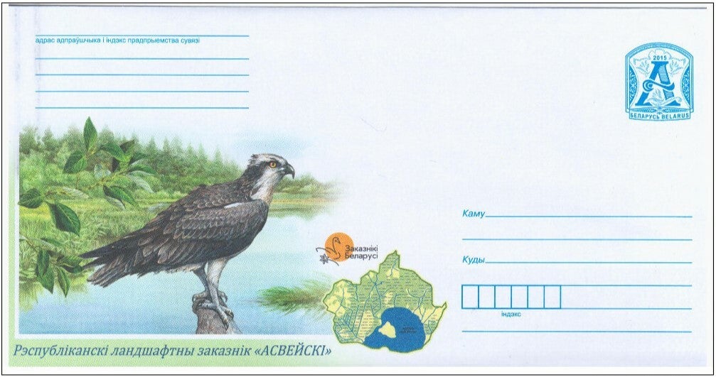 Birds of Prey (Pandion haliaetus) Western Osprey 2015 Belarus envelope