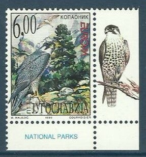 Birds of Prey Falcons (Falco peregrinus) Peregrine Falcon 1999 Yugoslavia stamp with tab