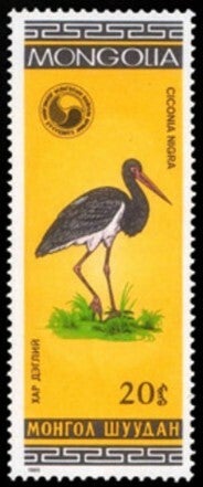 Birds Storks (Ciconia nigra) Black Stork 1985 Mongolia stamp