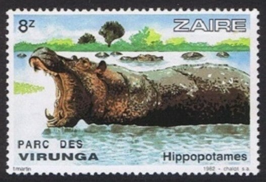 2106 Animals 1982 Zaire Hippos (Hippopotamus amphibius) Common Hippopotamus stamp