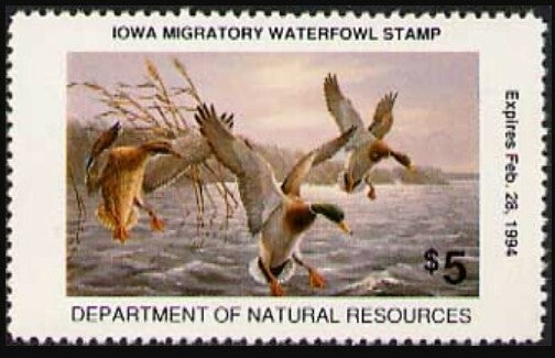 Birds 1993 USA Iowa Ducks (Anas platyrhynchos) Mallard waterfowl stamp