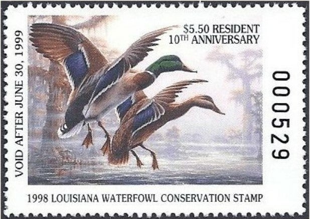Birds 1998 USA Louisiana Ducks (Anas platyrhynchos) Mallard $5_50 waterfowl stamp