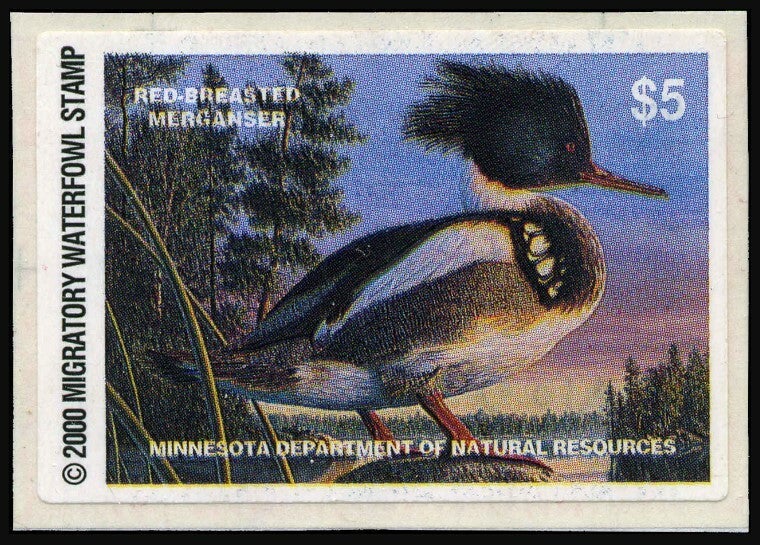 Birds 2000 USA Minnesota Ducks (Mergus serrator) Red-breasted Merganser waterfowl stamp