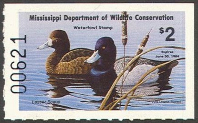 Birds 1983 USA Mississippi Ducks (Aythya affinis) Lesser Scaup waterfowl stamp imperforated T+R