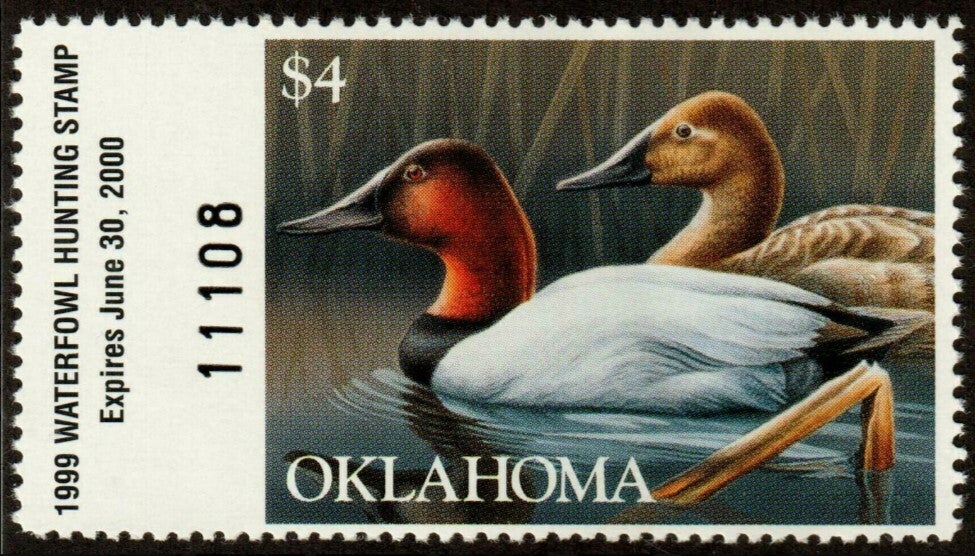 Birds 1999 USA Oklahoma Ducks (Aythya valisineria) Canvasback waterfowl stamp