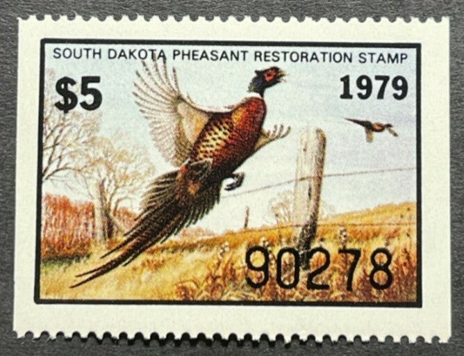 Birds 1979 USA South Dakota (Phasianus colchicus) Common Pheasant conservation stamp 2 sides imperforated