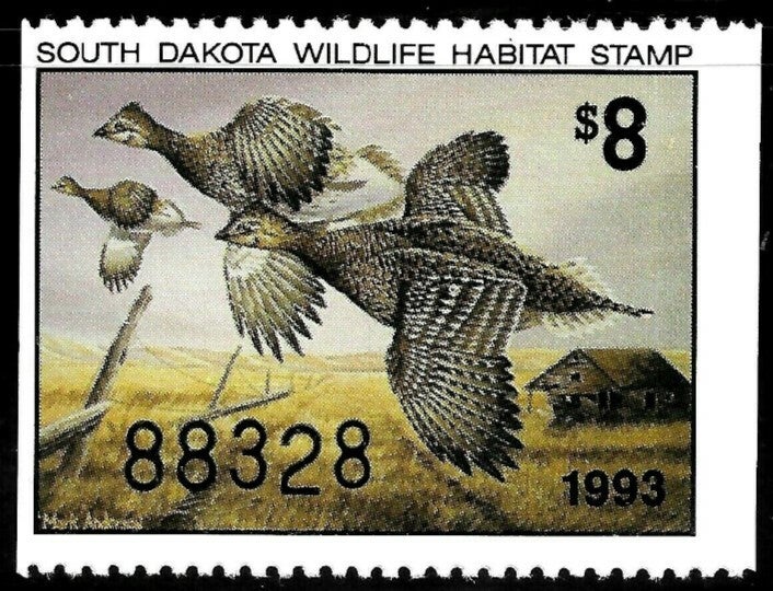 Birds 1993 USA South Dakota (Phasianus colchicus) Common Pheasant conservation stamp 2 sides imperforated