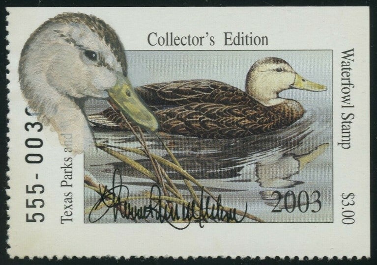 Birds 2003 USA Texas Ducks (Anas fulvigula) Mottled Duck waterfowl artist stamp