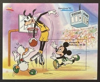 2203 Cartoons Comics BD 1992 Antigua & Barbuda Mickey Mouse Donald Duck Goofy Olympic Games Barcelona Sport Basketball block 1