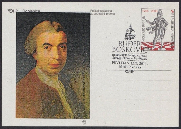 2204 Geodesy 2011 Croatia Ruder Josip Boskovic postcard with postmark 2