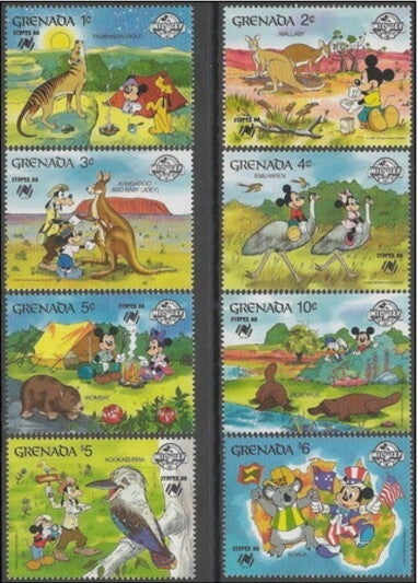 2208 Cartoons Comics BD 1988 Grenada Disney Mickey Mouse Goofy Pluto Bird Kookaburra Wombat Kangaroo Wallaby Sydpex 88 serie