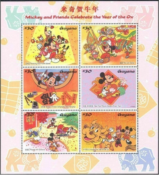 2209 Cartoons Comics BD 1997 Guyana Disney Mickey Minnie Mouse Donald Daisy Duck Goofy Pluto Chinese New Year Ox sheet 2